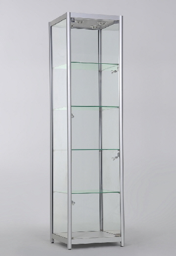 Dörr med las, 6 halogen spotlights, Ram i eloxerad aluminium samt härdat säkerhetsglas.
